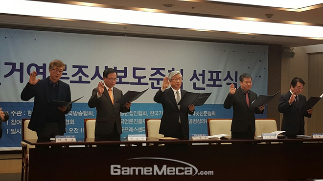 한국신문협회·한국방송협회·한국신문방송편집인협회·한국기자협회·한국인터넷신문협회 등 언론 5개 단체가 선거여론조사보도준칙을 공동으로 제정하여, 8일(목) 오전 11시 한국프레스센터에서 선포했다.