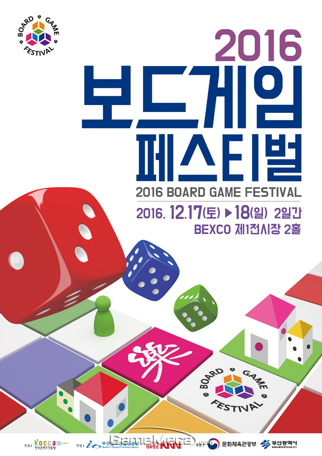 한국콘텐츠진흥원이 주최하고, 부산정보산업진흥원과 KNN이 주관하는 ‘2016 보드게임 페스티벌’이 오는 12월 17일(토)부터 12월 18일(일)까지 부산 해운대 벡스코 제 1 전시장 2홀에서 개최된다.