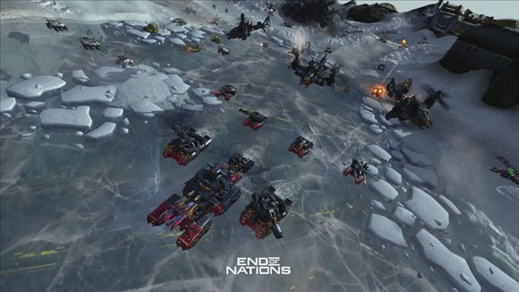 두 번째는 `엔드오브네이션즈`다. 과거 `커맨드앤컨커`를 제작한 웨스트우드 일부 개발진들이 참여해 제작 중인 이 신작은 유례 없는 MMORTS를 지향하고 있으며, 넓은 맵에서 자신의 유닛을 조종해 적을 무찌르는 방향을 띄고 있다. 특히 지구 전체가 무대가 되는 만큼 `많은 사람`이 한꺼번에 모여 다방면에서 전투가 진행된다(관련기사).