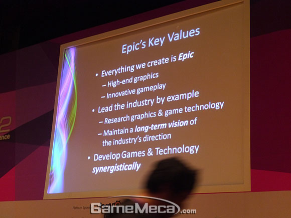 우선 에픽게임즈는 기존처럼 `게임`과 `기술`을 동시에 안고가는 글로벌 회사인 것을 다시 한번 내세웠다. 차세대 기술력을 도입한 언리얼엔진4의 개발, 모바일과 태블릿PC 등 모든 플랫폼을 하나로 연결하는 기술력, 그리고 이에 맞는 다양한 게임을 개발해 시장에 어필하려는 계획까지, 누가봐도 에픽게임즈다운 내용이 공개됐다.