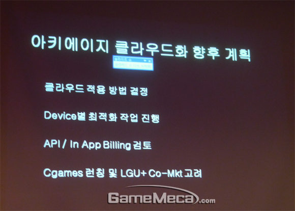 또, 그는 현재 논의 중인 `아키에이지`의 클라우드화를 시작으로 가장 알맞은 비즈니스모델을 선정, 온라인 게임의 클라우드 서비스를 확장해 나가겠다는 의지를 표했다.