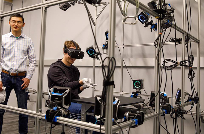 ▲ '오큘러스 글러브'를 시연 중인 페이스북 마크 저커버그 대표