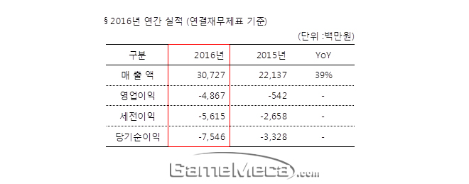 ▲ 한빛소프트 2016년 연간 실적 (자료제공: 한빛소프트)