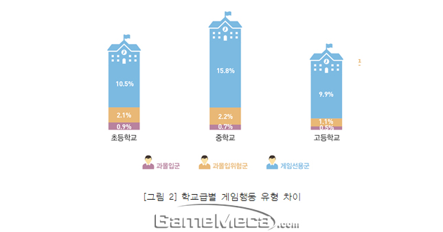 '과몰입군' 비율은 상급학교로 갈수록 낮아지는 경향을 보였다. 초등학교 '과몰입군' 비율은 0.9%로 전년보다 0.1%p 상승했지만, 중학교와 고등학교 '과몰입군'은 각각 0.7%, 0.5%로 2015년에 비해 각각 0.1%p, 0.2%p 감소했다.