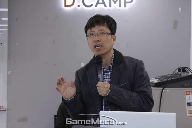 ▲ 발제 및 토론 사회를 맡은 게임인연대 김정태 교수 (출처: 게임메카 촬영)