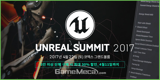 ‘언리얼 서밋 2017’은 특별 홈페이지(바로가기)에서 사전등록이 진행 중이며, 참가비는 학생 4만 원, 일반인 6만 원이다. 5인 이상 단체에는 전체 금액의 최대 30%의 할인이 제공된다.