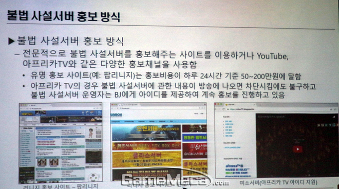 ▲ 최근에는 개인방송을 통해 불법 서버를 광고하는 일도 있었다