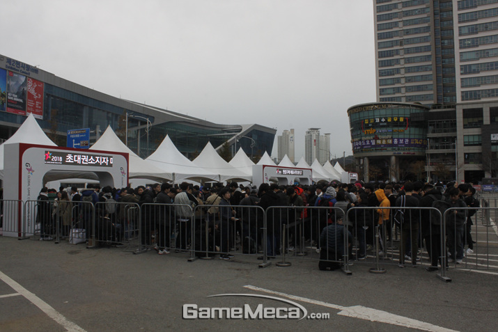 ▲ 둘째 날도 이른 아침부터 긴 대기열을 형성했다 (사진: 게임메카 촬영)