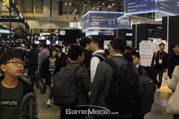 ▲ 단축 수업을 마치고 행사장을 찾은 학생 관람객들 (사진: 게임메카 촬영)