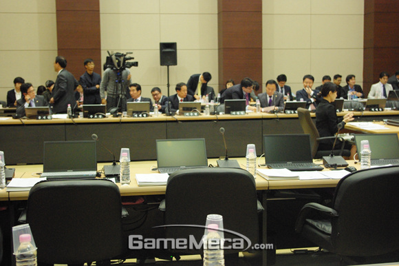 국회는 오늘(15일) 문화체육광광부 산하 한국콘텐츠진흥원과 한국문화예술위원회, 영화진흥위원회, 영상물등급위원회, 게임물등급위원회, 한국저작권위원회 총 여섯 개 기관에 대한 국정감사를 진행했다. 하지만 시작 시간 20여 분이 지나도록 민주통합당 및 무소속 의원이 모습을 나타내지 않아, 결국 10시 25분 야당 의원 전원이 불참한 채 본 회의가 시작됐다.