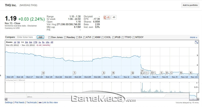 ▲ 실적 발표 이후 순식간에 하락한 THQ의 주가