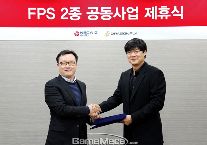 양사는 지난 15일 네오위즈게임즈 사옥에서 차세대 FPS게임 2종 ‘프로젝트 SFG’와 ‘프로젝트 R’에 대한 공동사업 제휴식을 진행하고, 2004년부터 이어온 파트너십을 더욱 강화할 것을 약속했다.