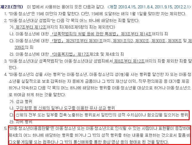 ▲ 논란화된 아동•청소년의 성보호에 관한 법률 제 2조 (자료출처: 국가법령정보센터)