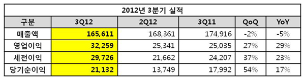 네오위즈게임즈는 2012년 3분기에 국제회계기준(K-IFRS) 연결 재무제표 기준으로 매출 1,656억 원, 영업이익 323억 원, 당기순이익 211억 원을 기록했다고 23일 밝혔다.