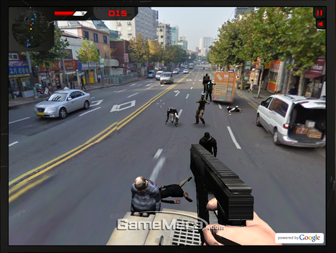 게임을 살펴보면 ‘구글 스트리트 뷰’에서 지원하는 실제 풍경을 무대로 좀비를 사냥할 수 있는데, 공식 홈페이지에 접속해 원하는 주소를 입력하면 바로 즐길 수 있다. 집 주소를 입력하면 자신의 집 주위로 몰려드는 좀비들을 볼 수 있는 것이다.
