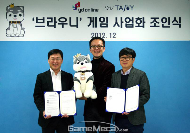 와이디온라인은 ‘브라우니’ 캐릭터의 상표권을 소유하고 있는 타조와 게임사업화 협약을 위한 조인식을 개최하고 향후 진행될 사업에 대해 합의했다고 17일 밝혔다.