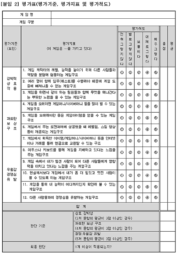 ▲ 지난 9월에 발표된 여성부의 셧다운제 대상 게임물 평가기준