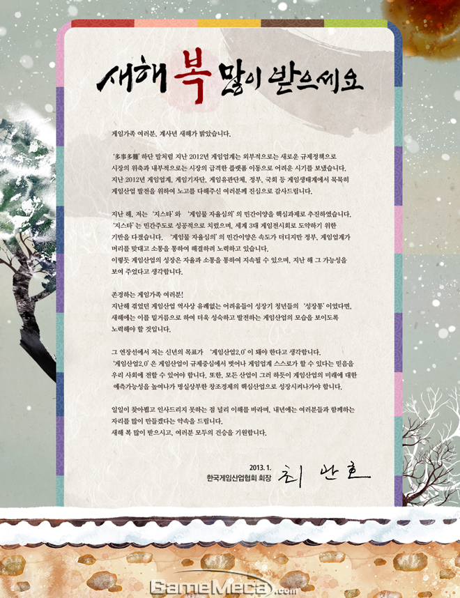 ▲ 한국게임산업협회 최관호 협회장의 2013년 신년사