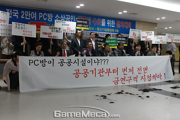 ▲ 2011년에 진행된 PC방 금연법에 반대하는 결의대회 현장