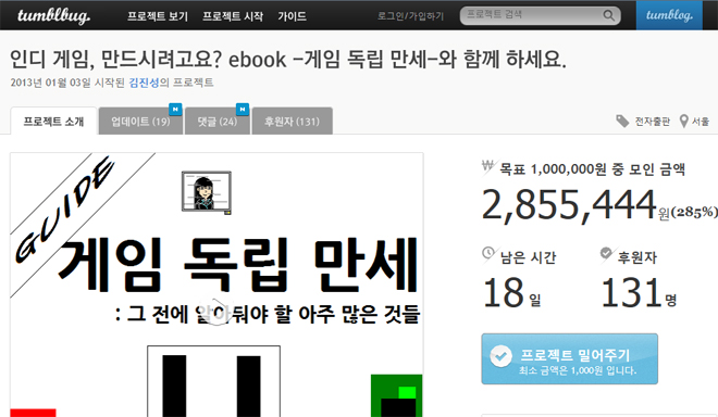 창업 참고서, 인디게임 e북 '게임독립만세' 모금 순항