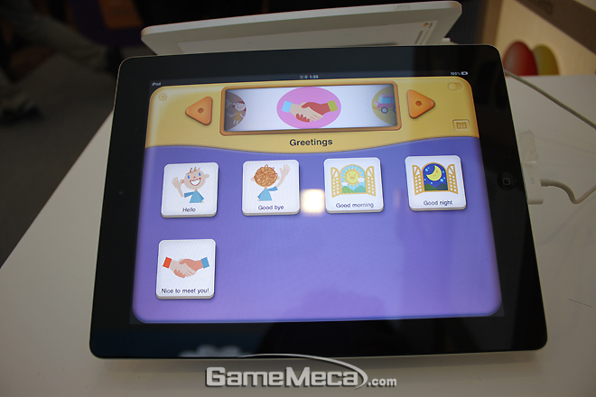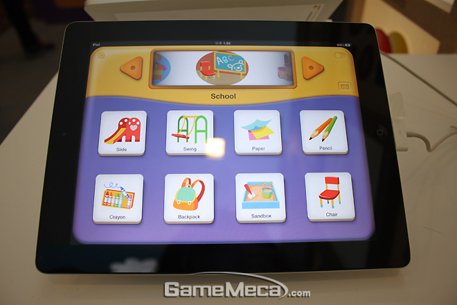 이러한 차원에서 개발된 게임이 바로 ‘AAC’다. ‘AAC’는 일상 생활에서 맞닥뜨릴 수 있는 다양한 상황을 총 22종의 카테고리로 분류하고, 적절하게 활용할 수 있는 단어 혹은 간단한 문장에 대한 아이콘을 제시해, 이를 눌러 의사를 전달하는 것이다. 예를 들어, ‘학교’에서 무언가를 필기할 ‘종이’가 필요하다면 종이 그림이 들어간 아이콘을 손가락으로 누르면 된다. 그럼 ‘종이’라는 단어가 기기에서 음성으로 나와 상대방이 이 사람이 원하는 것이 뭔지 단박에 알 수 있는 구조다.