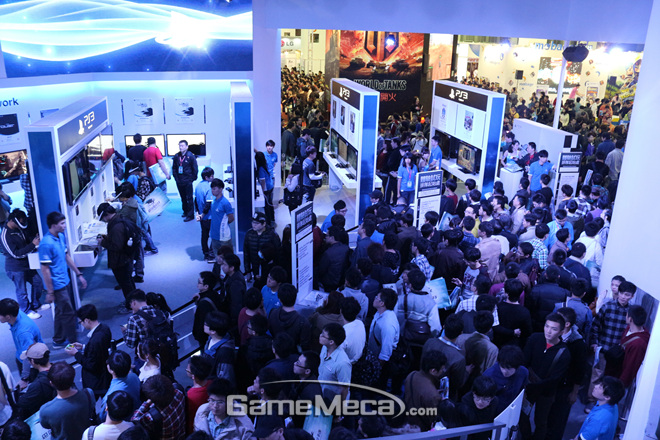 ▲ 위에서 내려다 본 소니 부스의 인파, 다른 곳도 사람이 많지만, 특히 심하다