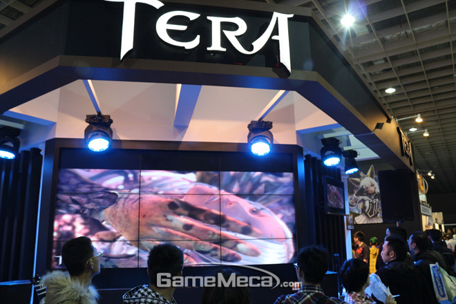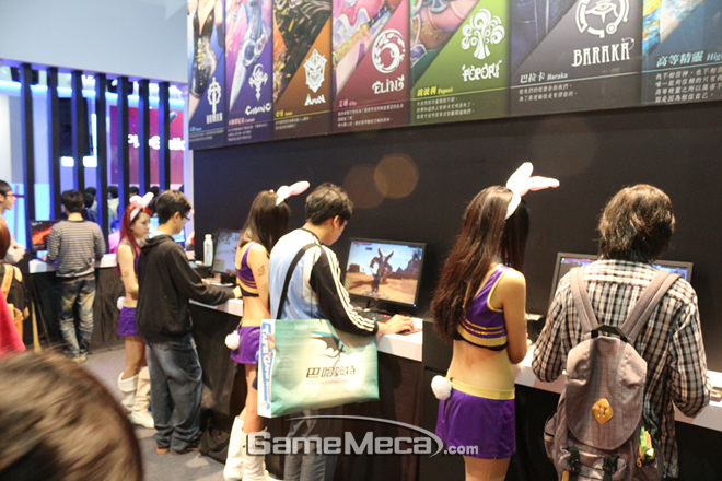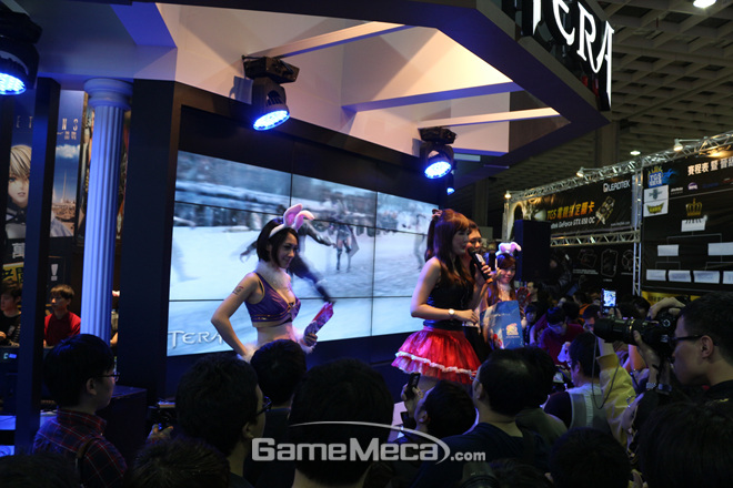 ▲ '테라' 부스의 부스도우미들은 죄다 '엘린' 귀와 꼬리를 달고 있다
