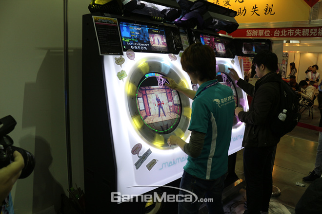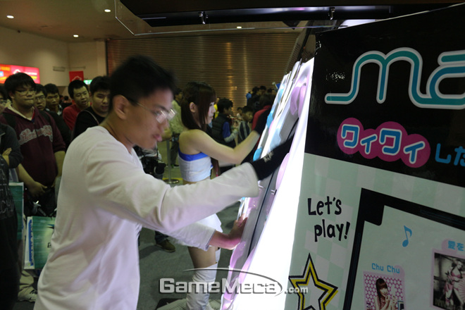 ▲ 회장 한쪽 끝으로 가 보니 아케이드 기기가 보인다. 세가의 신작 리듬게임 '마이마이'