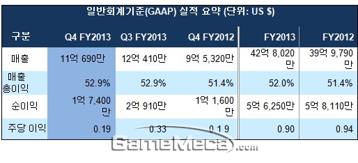 엔비디아는 지난 1월 27일(미국 현지시간) 마감된 2013 회계연도 4/4분기 및 연간 실적을 발표하고, 2013 회계연도 연간 매출(2012년 2월~2013년 1월)이 미화 42억 8,000만 달러에 달한다고 밝혔다. 이는 40억 달러를 기록한 지난해 대비 7.1% 증가한 수치다.