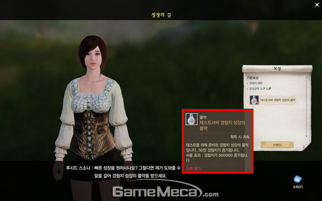 ▲ 경험치 성장의 물약을 주는 NPC가 장비도 팔고 있다