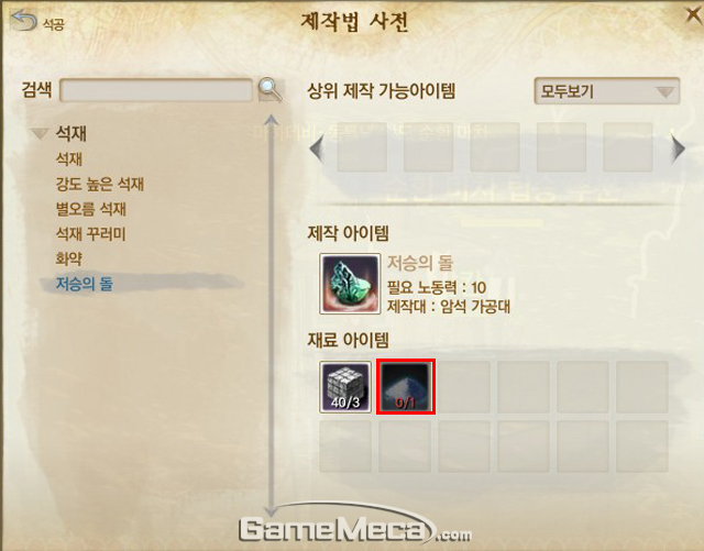 저승의 돌 및 제작 아이템 제작 난이도 하향