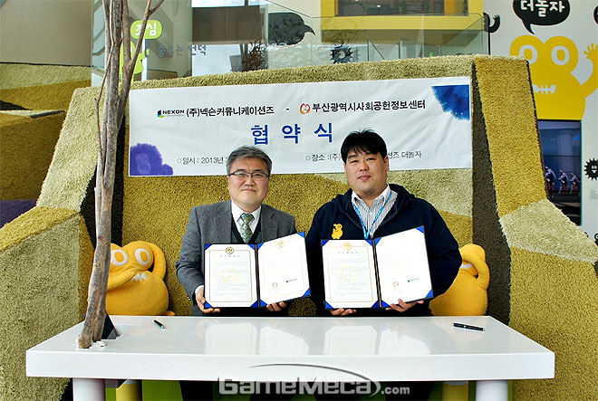 넥슨커뮤니케이션즈는 14일 부산문화콘텐츠컴플렉스(BCC)에서 부산광역시사회공헌정보센터와 업무협약을 체결하고 소외계층을 위한 ‘문화나눔’ 활동에 적극 협력해나갈 것이라고 밝혔다.