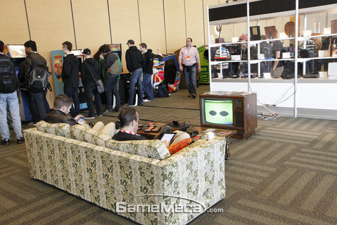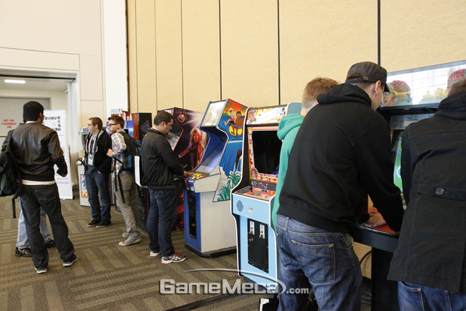 아침을 간단히 해결하고 강의실로 이동하던 중 재미있어 보이는 장소를 발견했습니다. 전날 방문했던 아케이드 박물관에서나 볼 수 있을 것 같은 고전 아케이드 게임기들이었는데요, 세션을 기다리던 다른 개발자들이나 방문객들도 호기심 어린 표정으로 이것저것 플레이 해 보고 있더군요. 컨퍼런스나 강연이라고 하면 다소 딱딱한 느낌을 받기 쉬운데, 모두 함께 즐기고 관심사를 교류하는데도 많은 신경을 쓴 모습이 엿보였습니다. 그야말로 게임을 사랑하는 사람들이 함께하는 ‘축제’처럼 느껴질 정도였습니다.