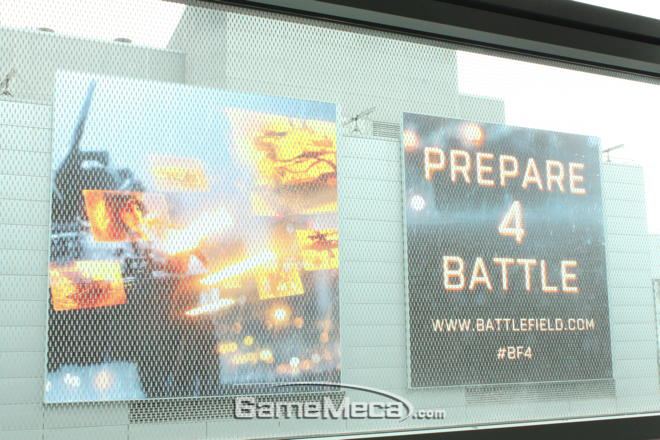 ▲ 웨스트 홀 밖으로 보이는 건물 전면의 '배틀필드 4' 포스터
