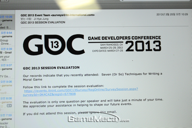 ▲ 강연을 듣고 나니 뙇! 세션 평가 메일이 10초만에 날라왔네요