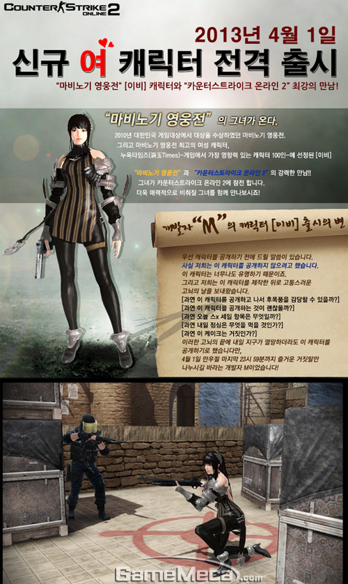 ‘마비노기 영웅전(이하 마영전)’과 ‘카운터스트라이크 온라인2’가 상큼하게 만났다. ‘카운터스트라이크 온라인2’가 ‘마영전’의 여캐릭터 이비를 4월 1일 출시했다.