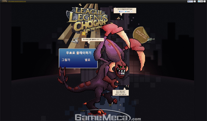 ‘리그오브레전드: 초가스 냠냠 세계여행’은 최고의 개발진이 제작한 경이로운 8비트 풀 랜더링 그래픽과 오리지널 MIDI 음악이 특징인 플래시 게임이다. 게임 진행 중 뜻 밖의 장소에서 익숙한 캐릭터(리그오브레전드)를 마주치면서 투닥거리는 재미가 있다. 주인공인 초가스는 강력한 적을 상대로 대도시를 순서대로 클리어 해야 하며, 이용료는 무료다.