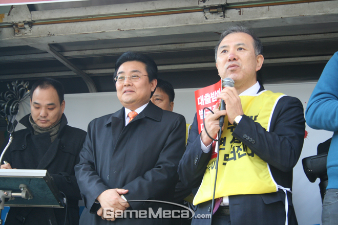 ▲ 전병헌 의원은 이 날 집회 현장에 직접 방문했다 (사진제공: 한국인터넷문화콘텐츠협동조합)