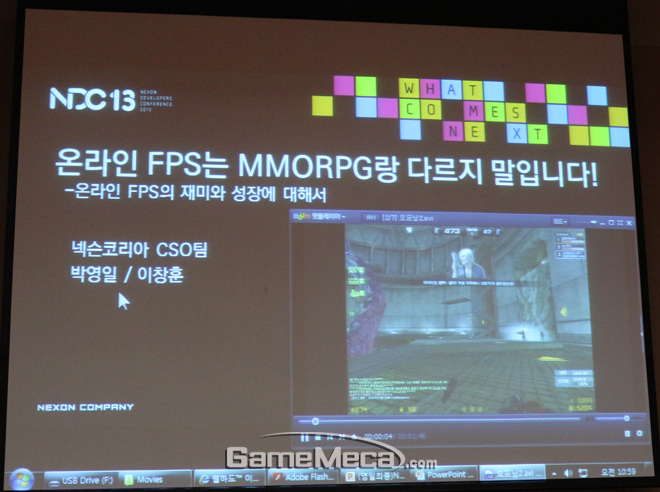 오늘(25일), 넥슨코리아 카스온라인 개발팀 박영일 선임연구원과 이창훈 연구원이 '온라인 FPS는 MMORPG랑 다르지 말입니다!'라는 주제로 세션을 갖고 FPS만이 가진 재미요소와 콘텐츠에 대해 발표했다. 그들은 RPG와 FPS를 비교하며 FPS의 콘텐츠를 개발할 때 고려해야 할 부분도 설명했다.