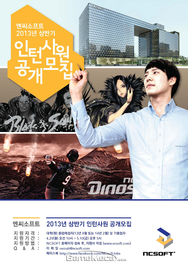 ▲ 엔씨소프트의 2013년 상반기 인턴사원 선발 포스터 (사진제공: 엔씨소프트)