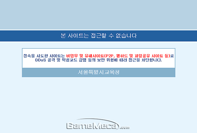 ▲ 게임포털, 게임매체 등 국내 게임관련 사이트는 학교 및 도서관에서 접속차단 대상으로 설정되어 있다