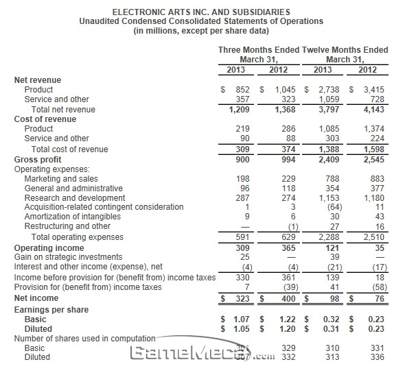 EA는 회계연도 기준 2013년(2012년 4월~2013년 3월) 실적을 발표했다.