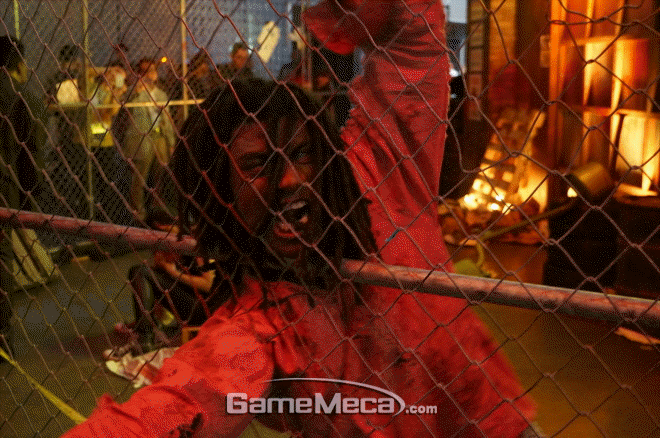 ▲ 철조망 사이로 손을 뻗고 괴성도 지르는 등, 맡겨진 몫에 최선을 다하는 좀비