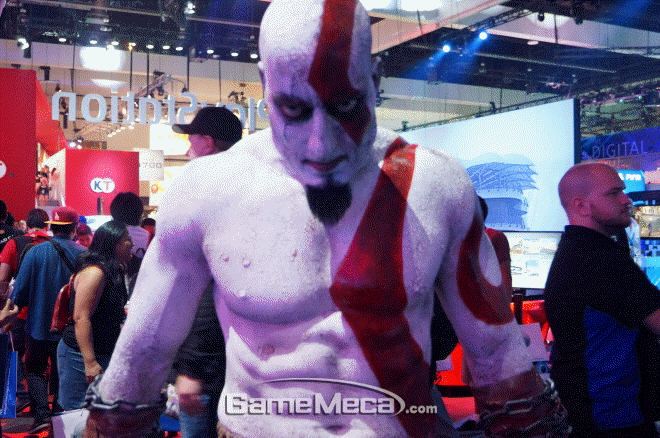 소니 부스 양옆으로 자리한 닌텐도와 MS에 분노 중인(?) '갓 오브 워' 크레토스
