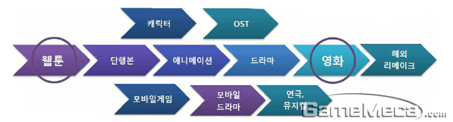 ▲ 웹툰을 기반으로 한 원소스 멀티유즈 구조 (자료제공: 문화부)