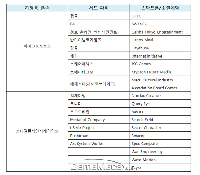※ TGS 2013 참가 개발사를 정리한 표입니다. 주변기기/비즈니스 코너 등은 포함되지 않습니다