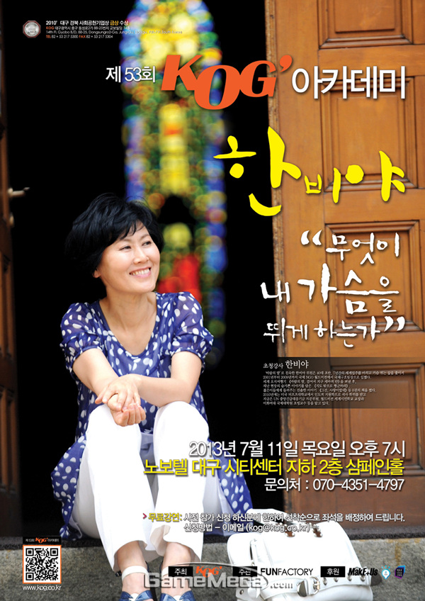 KOG는 국제구호활동 전문가로 유명한 ‘바람의 딸’ 한비야를 초청해 ‘무엇이 내 가슴을 뛰게 하는가’를 주제로 제 53회 'KOG 아카데미' 를 진행한다고 밝혔다.