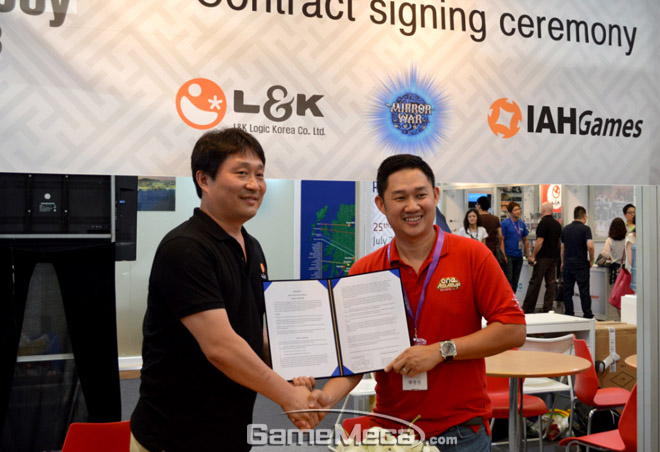 우선 엘엔케이는 차이나조이 첫 날인 25일 B2B 현장에서 온라인게임 퍼블리셔 IAHGames와 슈팅 RPG '거울전쟁: 신성부활(이하 거울전쟁)'의 싱가포르, 말레이시아 서비스 계약 체결식을 진행하며 성공적인 국외진출을 알렸다. IAHGames는 ‘피파온라인2’, ‘그라나도에스파다’, ‘카운터스트라이크 온라인’ 등 다양한 인기 게임들을 동남아시아 7개 국가에 서비스하고 있는 퍼블리싱 기업이다.
