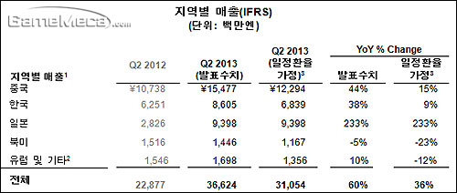 ▲ 넥슨 일본법인 2013년 2분기 지역별 매출