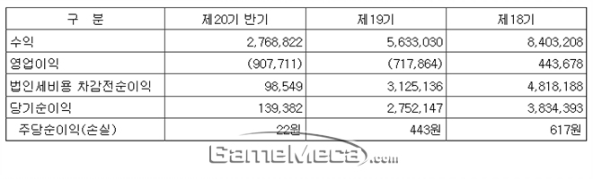 매출에서는 '던전앤파이터 XBLA' 와 '마그나카르타 2' 등의 콘솔 게임이 2,300만 원 수준으로 전체의 0.86%를 차지했으며, '테일즈위버' 도 1,600만 원(0.58%)의 수익을 올렸다. 나머지 98.57%인 27억 3천만 원의 수익은 여전히 'SD건담 캡슐파이터' 등을 포함한 온라인게임 매출액이 차지하고 있다.